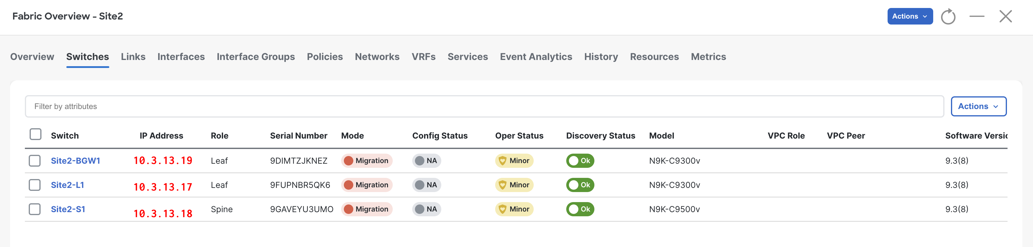 Your Switches table is empty at the moment. To populate it with the switches in your Site1 fabric:
