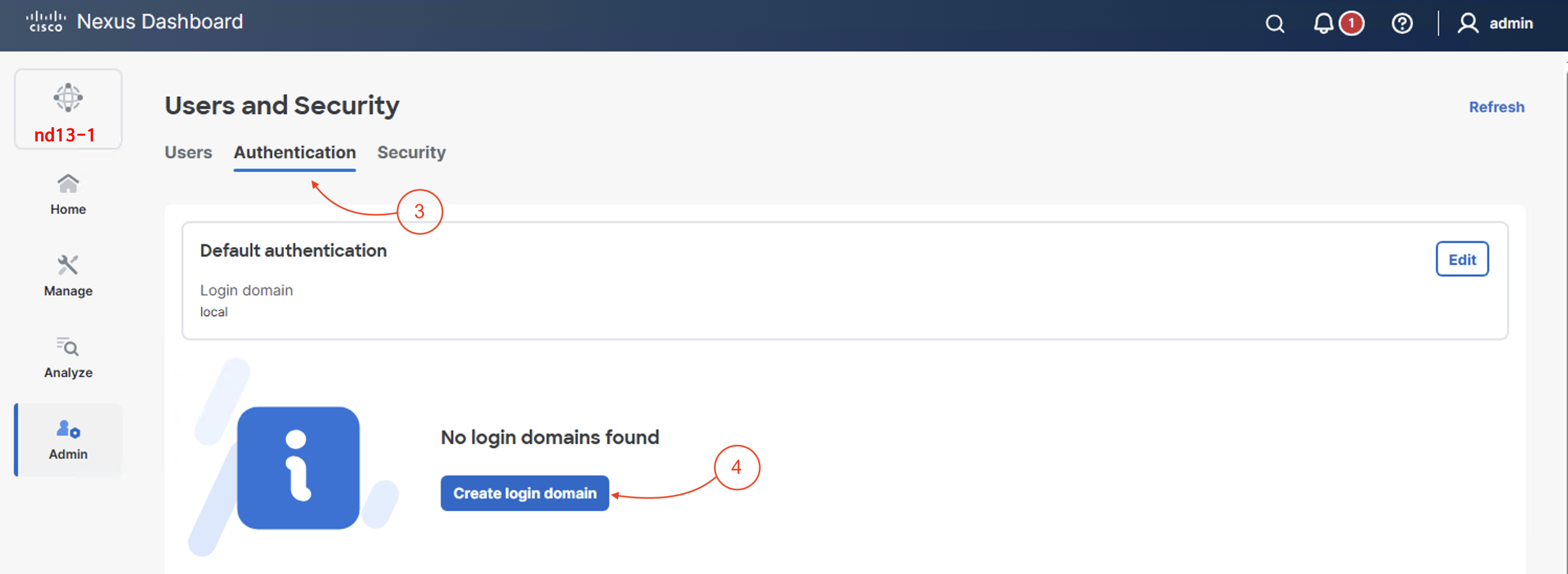 In this section, you will configure Role-Based Access Control (RBAC) on the Nexus Dashboard. RBAC enables user access based on roles defined within the configuration. These roles govern permissions for both local and external authentication and can be applied to the Nexus Dashboard itself, its integrated services, or both.