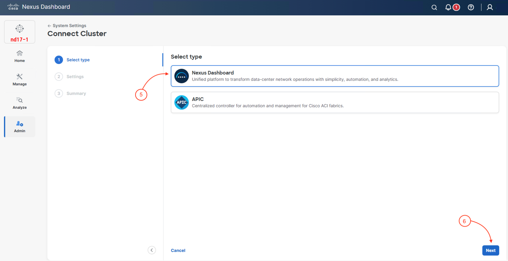 In this step, you will add the second Nexus Dashboard cluster, nd17-2, to the multi-cluster environment to enhance centralized management and scalability.
