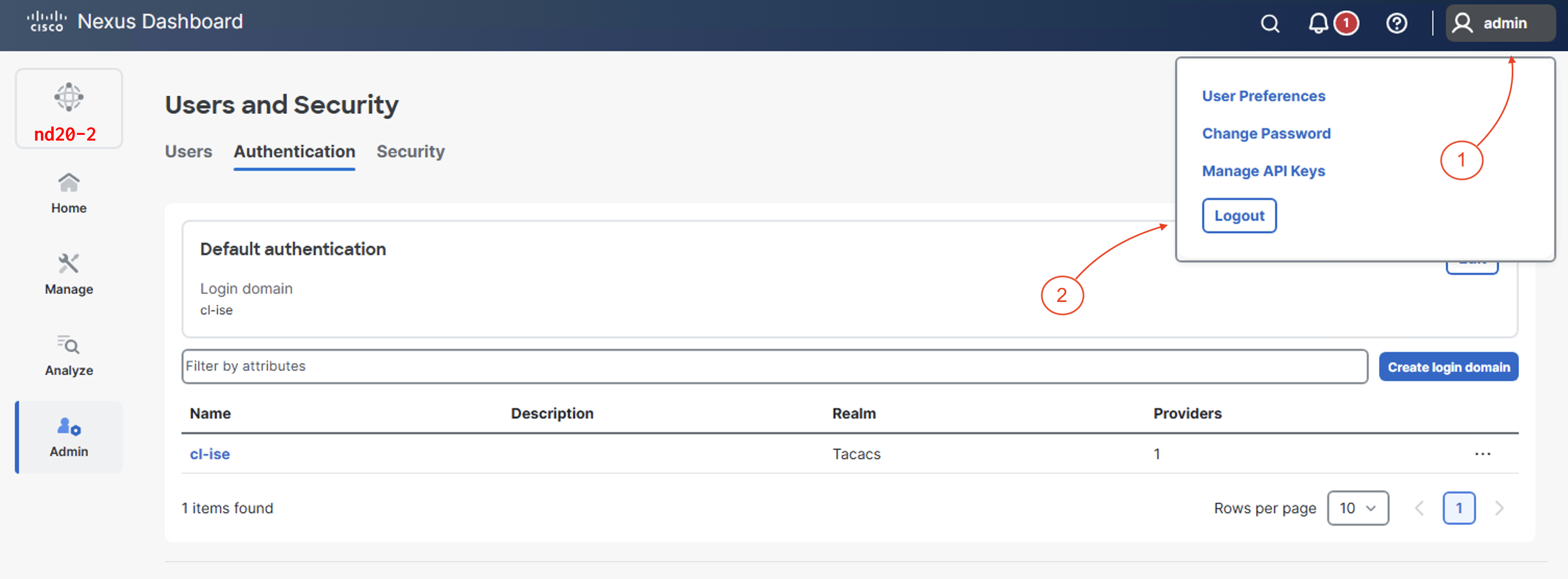 Upon saving, the Nexus Dashboard will return to the Users and Security page, displaying the updated default authentication method.