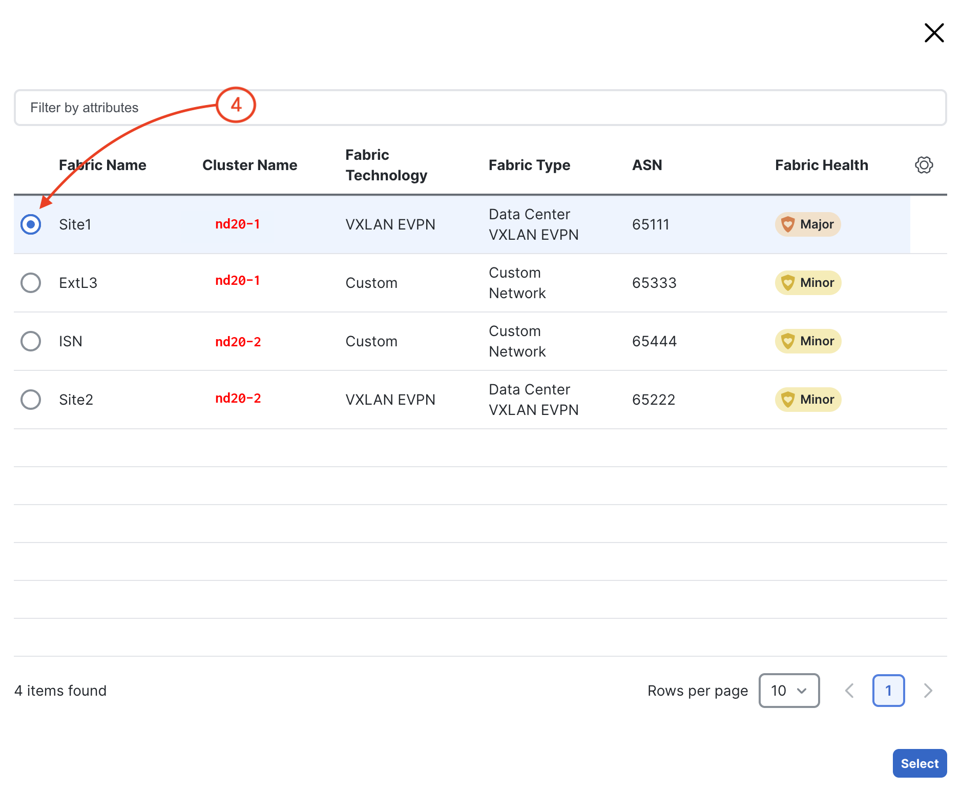 The last fabric you want to select and import is your ISN fabric. Locate ISN in the list of fabrics.