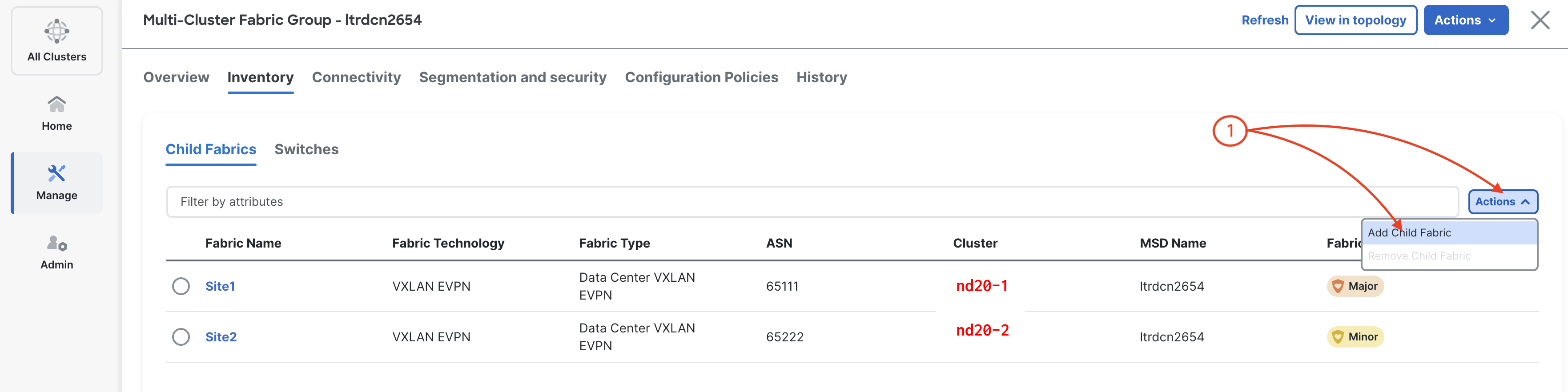 The next steps will guide you in adding your fabrics into your Multi-Cluster Fabric Group