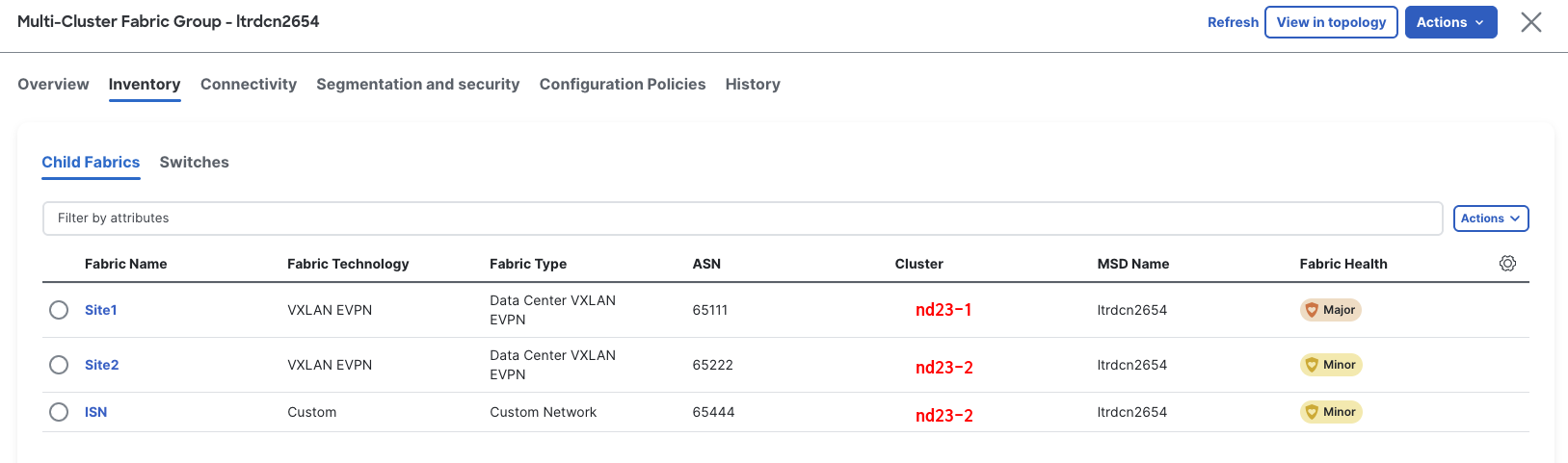 Ensure your Site1, Site2, and ISN fabrics are displayed under Child Fabrics.