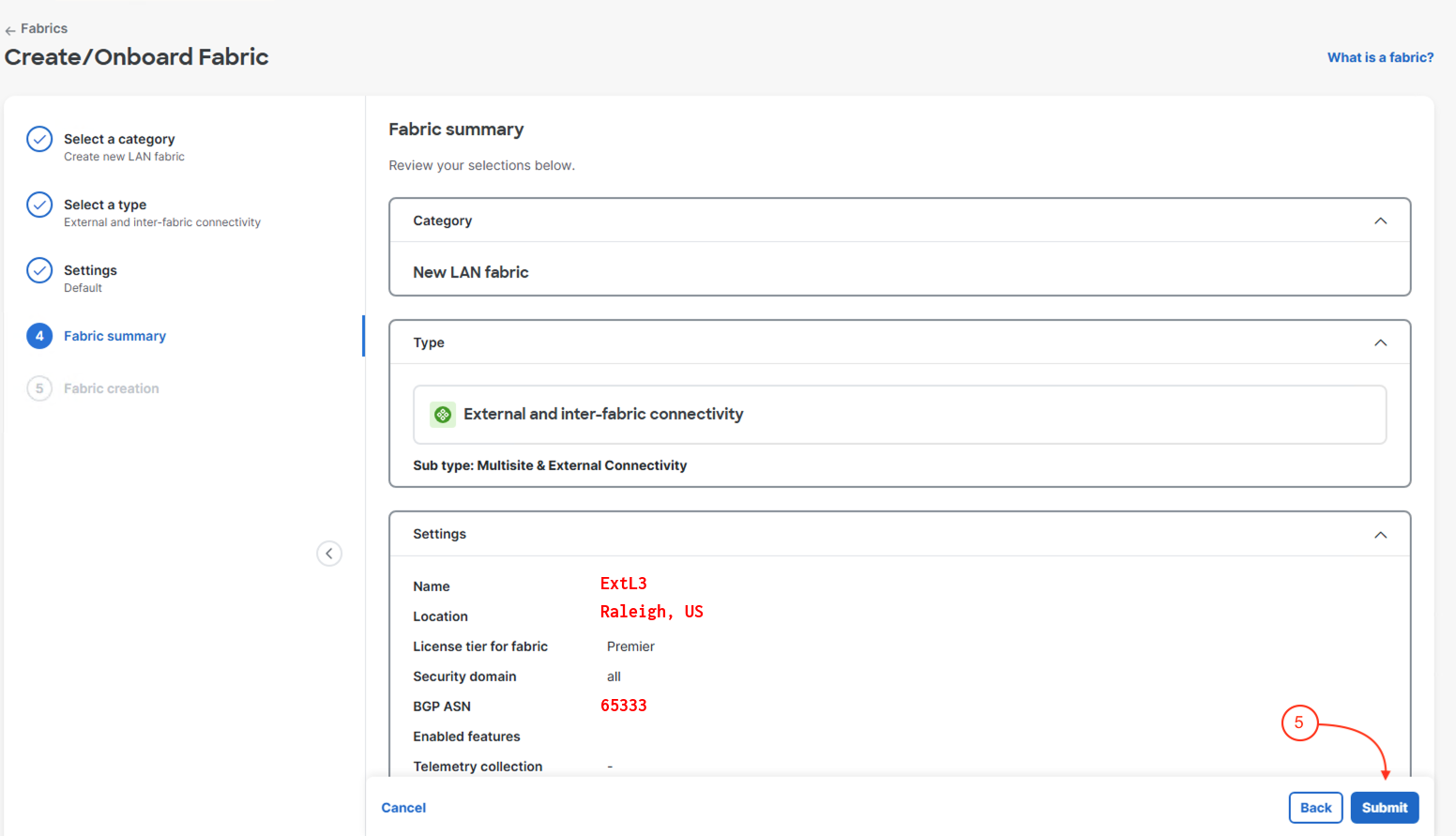 At this point you should be back to the Fabrics main page. You should now see Site1 and present.