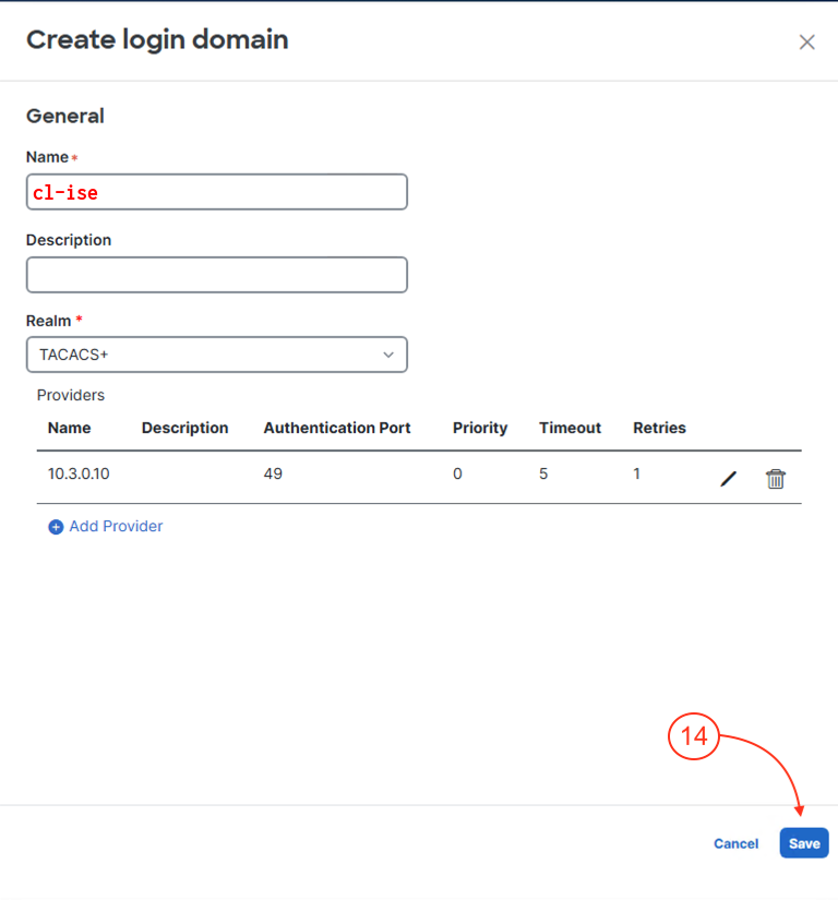 To streamline future logins, configure the default login domain authentication to cl-ise, the TACACS+ login domain established previously.