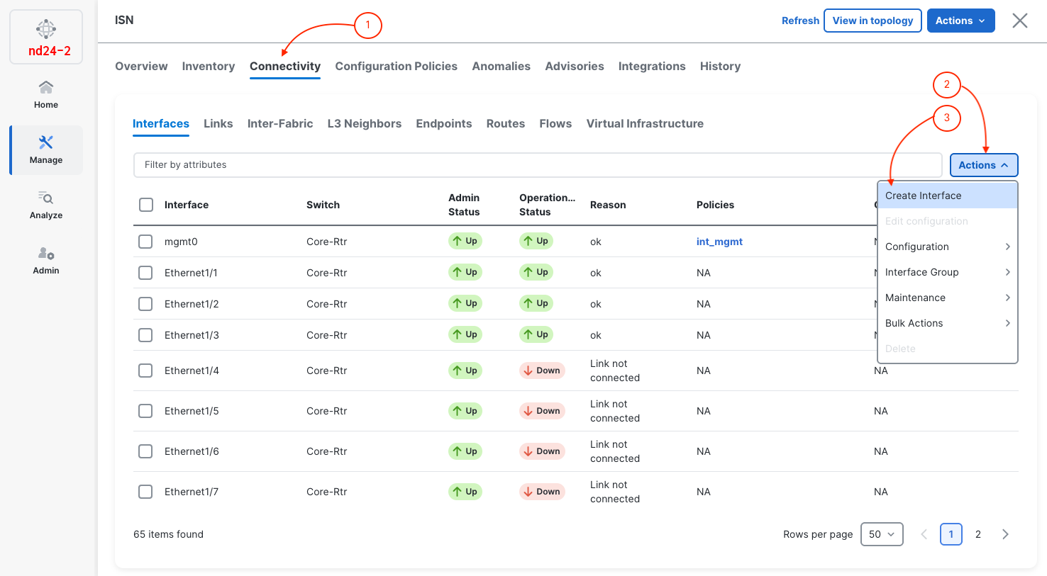 You created a loopback interface on the ISN core router that will serve as the Route Server endpoint for Multi-Site EVPN peering. Nexus Dashboard's interface wizard makes it easy to provision loopbacks with the right IP and route-map tags without touching the CLI.