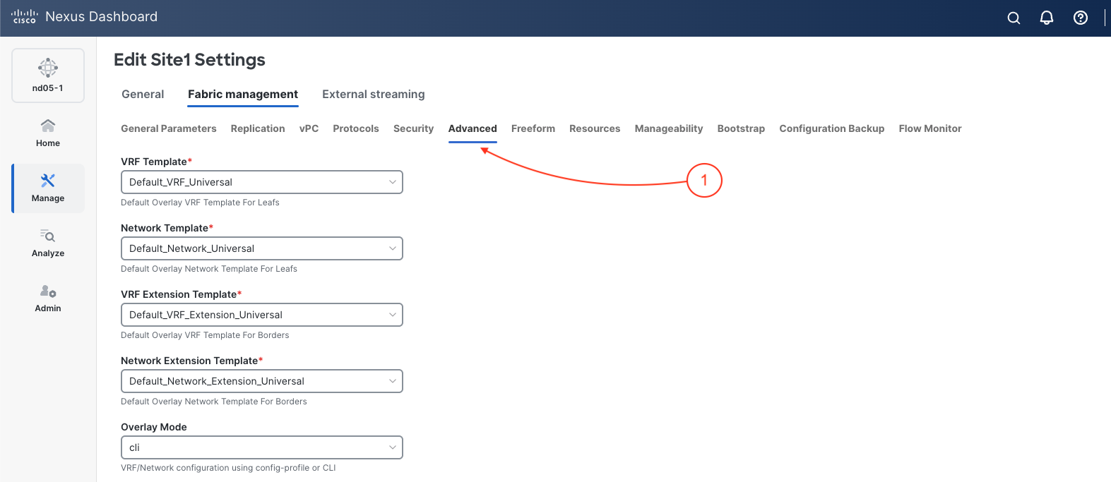 These settings form the foundation of your Site1 fabric. Nexus Dashboard will use them to automatically generate and push best-practice configurations to every switch you add in the next section.